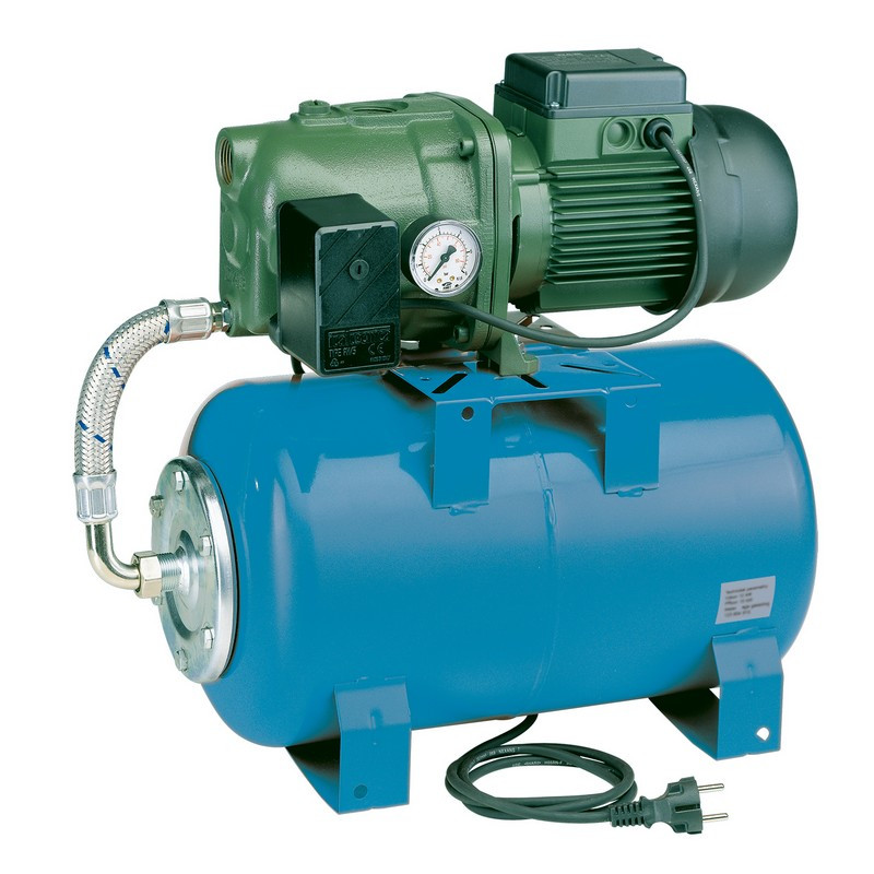 Domácí vodárna s profesionálním samonasávacím čerpadlem DAB a klasickou tlakovou nádobou. Nerezové čerpadlo, hydraulika z odolného termoplastu, kvalitní ucpávka, spolehlivý motor, nádoba s vyměnitelným vakem.
